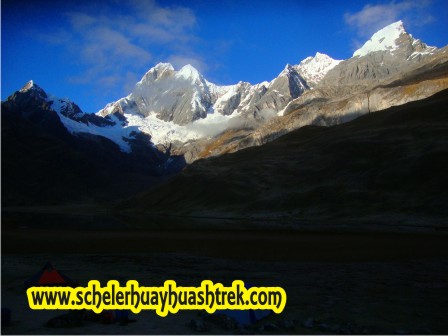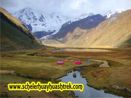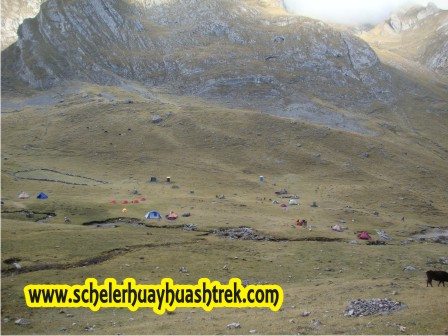 Décimo primer día, Laguna Jahuacocha 4100 m. - Pampa de Llamac 4300 m. - Llamac 3250 m. - Huaraz. Caminata aproximada de 5 a 6 horas. Viaje en bus aproximado de 5 horas. |