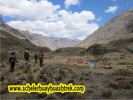 Descendiendo a lo largo del valle de Guanacpatay hasta llegar al pueblo de Huayllapa, luego se vuelve a ascender hasta el campamento de Huatiac.