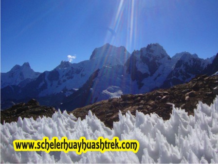 Por otra parte, sobre la formación de las nieves y glaciares en la Cordillera Huayhuash , existen diferencias relacionadas con la altitud pues en el lado oriental dicho fenómeno se produce entre los 4800 a 4900 m.s.n.m. y en el lado occidental a partir de los 5000 m.s.n.m., fenómeno que podría explicarse por el mayor tiempo de exposición que la insolación tiene en dicho flanco.