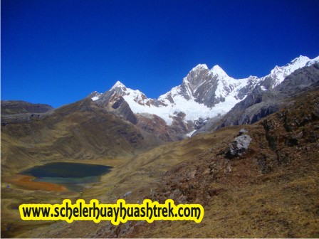 El macizo Huayhuash es la segunda sección de la cordillera occidental que sigue inmediatamente a la cadena Raura, finaliza su recorrido poco después del paso de Pucacalla (4700 m.s.n.m.), accidente que sirve de nexo a las provincias de Lauricocha (quebrada de Puchca) y Oyon (quebrada de Pucaranra), a partir del mencionado paso comienza Huayhuash siendo Ararag el primer picacho del complejo, en cuyo pie de monte (lado norte) se encuentra el abra del mismo nombre (4770 m.s.n.m.) vía de paso obligado entre las provincias de Lauricocha (quebrada de Huayhuash) y Cajatanbo (quebrada de Pumarinri). Aquí, apenas comienza el desplazamiento de la cordillera, surge un brazo que, desprendiéndose de la columna principal, se interna al oeste donde se levantan los nevados Puscanturpa (5550 m.s.n.m.), Cuyocraju (5320 m.s.n.m.), Pumarinri (5465 m.s.n.m.), Pariaucru (5572 m.s.n.m.) y Huacshash (5644 m.s.n.m.), ramal que avanza hasta el centro poblado de Uramaza, ubicado cerca a la ciudad de Cajatambo, La cadena, cuyo nevado inicial es el Huayhuash, nombre que se hace extensivo a todo el complejo cordillerano, prosigue su desplazamiento hacia el norte formando una singular e imponente columna de glaciares, siendo uno de los pocos escenarios paisajísticos de belleza extraordinaria a nivel mundial, con altitudes que fluctúan entre los 5000 y 6000 m.s.n.m., estas altas montañas, vistas desde el lado oriental, tienen la siguiente alineación: Huayhuash (5664 m.s.n.m.), Jurau (5650 m.s.n.m.), Carnicero (5980 m.s.n.m.), Sarapo (6143 m.s.n.m.), Siula (6356 m.s.n.m.), Yerupajá (6634 m.s.n.m.), Santa rosa (6220 m.s.n.m.), Jirishanca (6126 m.s.n.m.), Rondoy (5890 m.s.n.m.), Ninashanca (5637 m.s.n.m.) que después de 30 Km. de desplazamientos culmina en el paso de Cuncush grande ubicado a 4660 m.s.n.m.