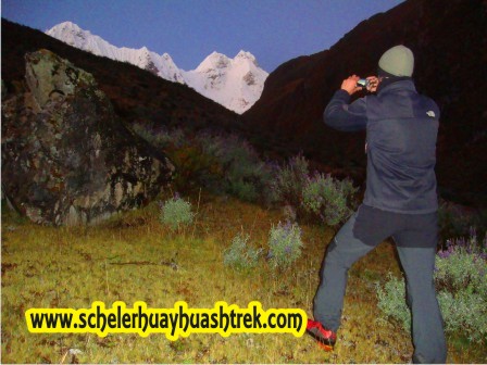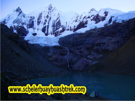 Décimo segundo día, Laguna Jahuacocha 4100 m. - Pampa de Llamac 4300 m. - Llamac 3250 m. - Huaraz. Caminata aproximada de 5 a 6 horas. Viaje en bus aproximado de 5 horas. |